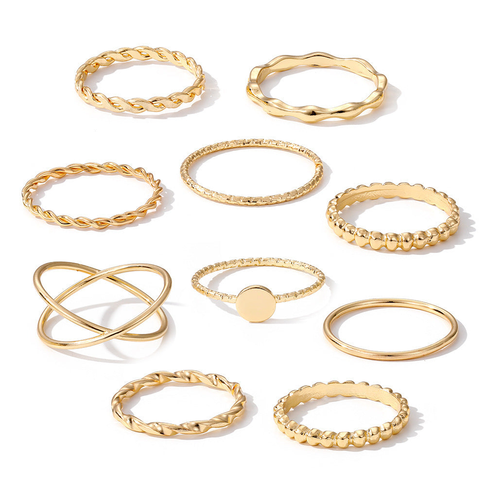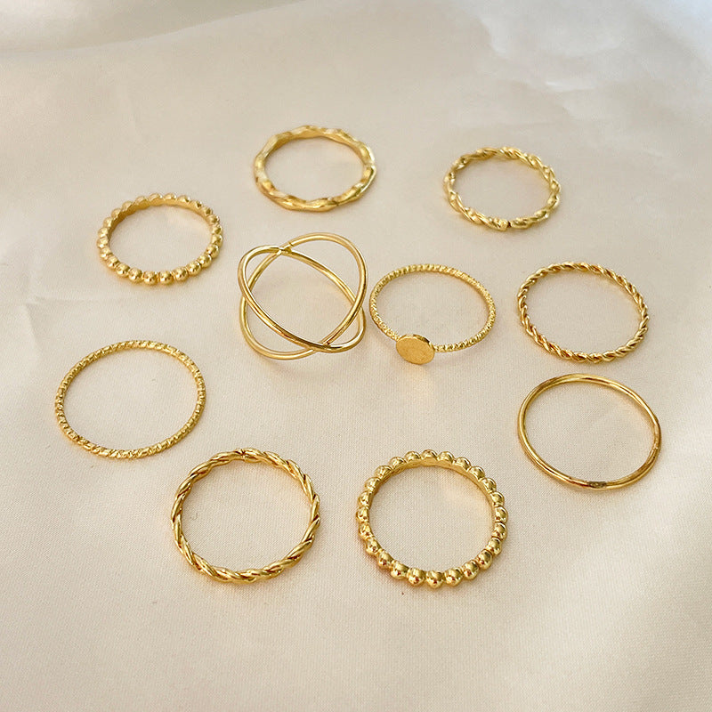 New Women's Knuckle Ring Twist Cross 10-piece Set